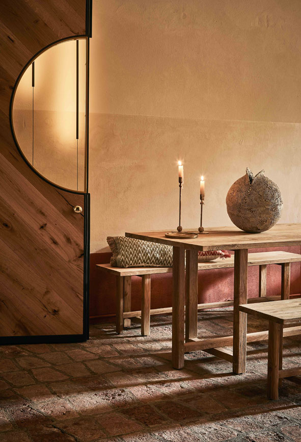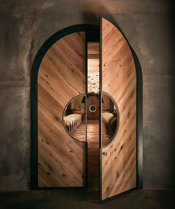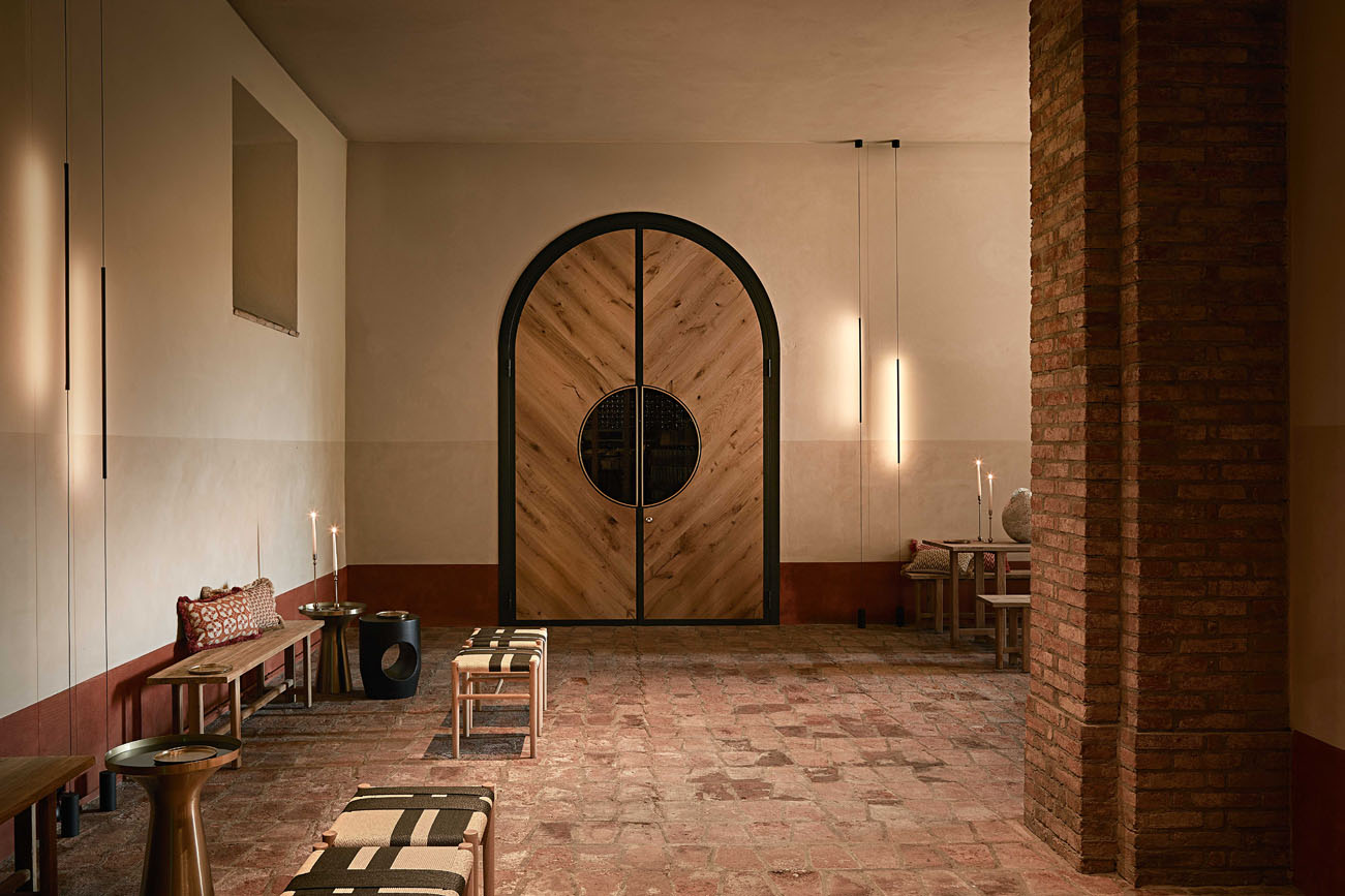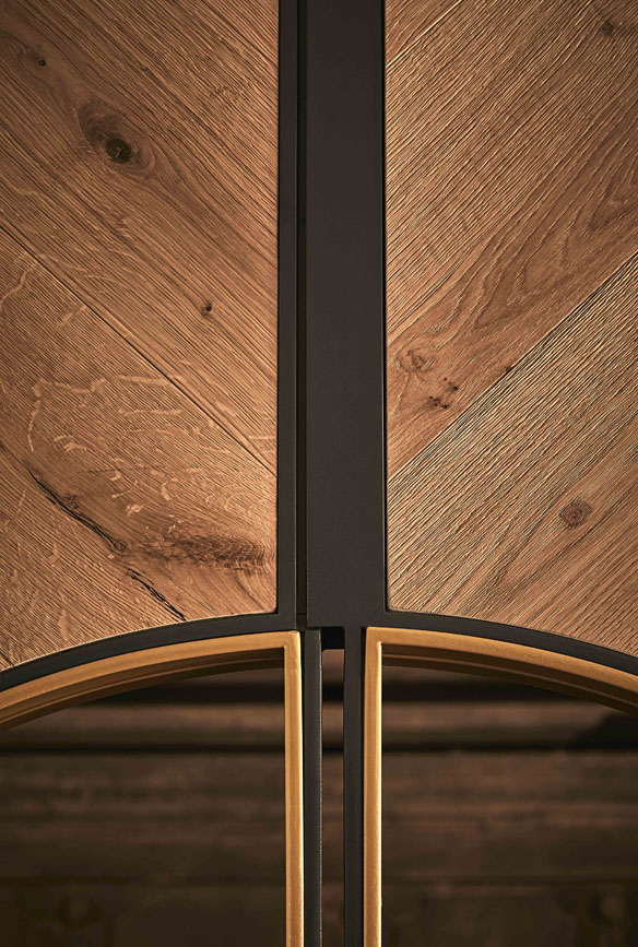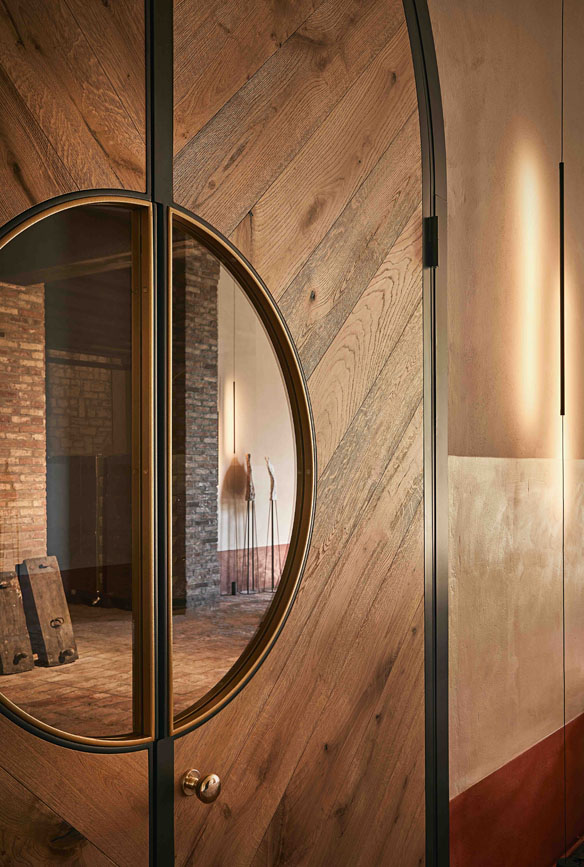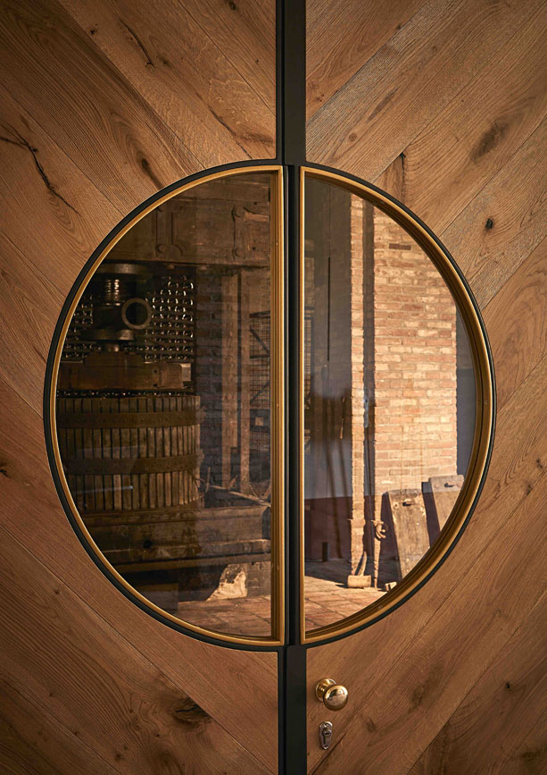 I grandi portoni sono certamente protagonisti assoluti, tutelando il delicato sistema di temperature tra interno ed esterno giocano egregiamente la loro partita per forma ed eleganza.