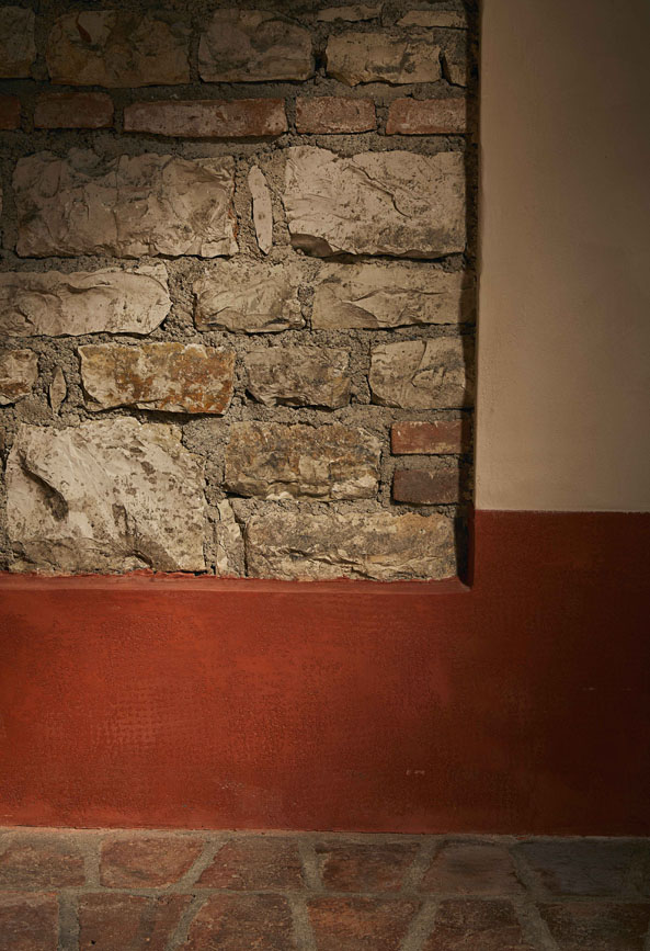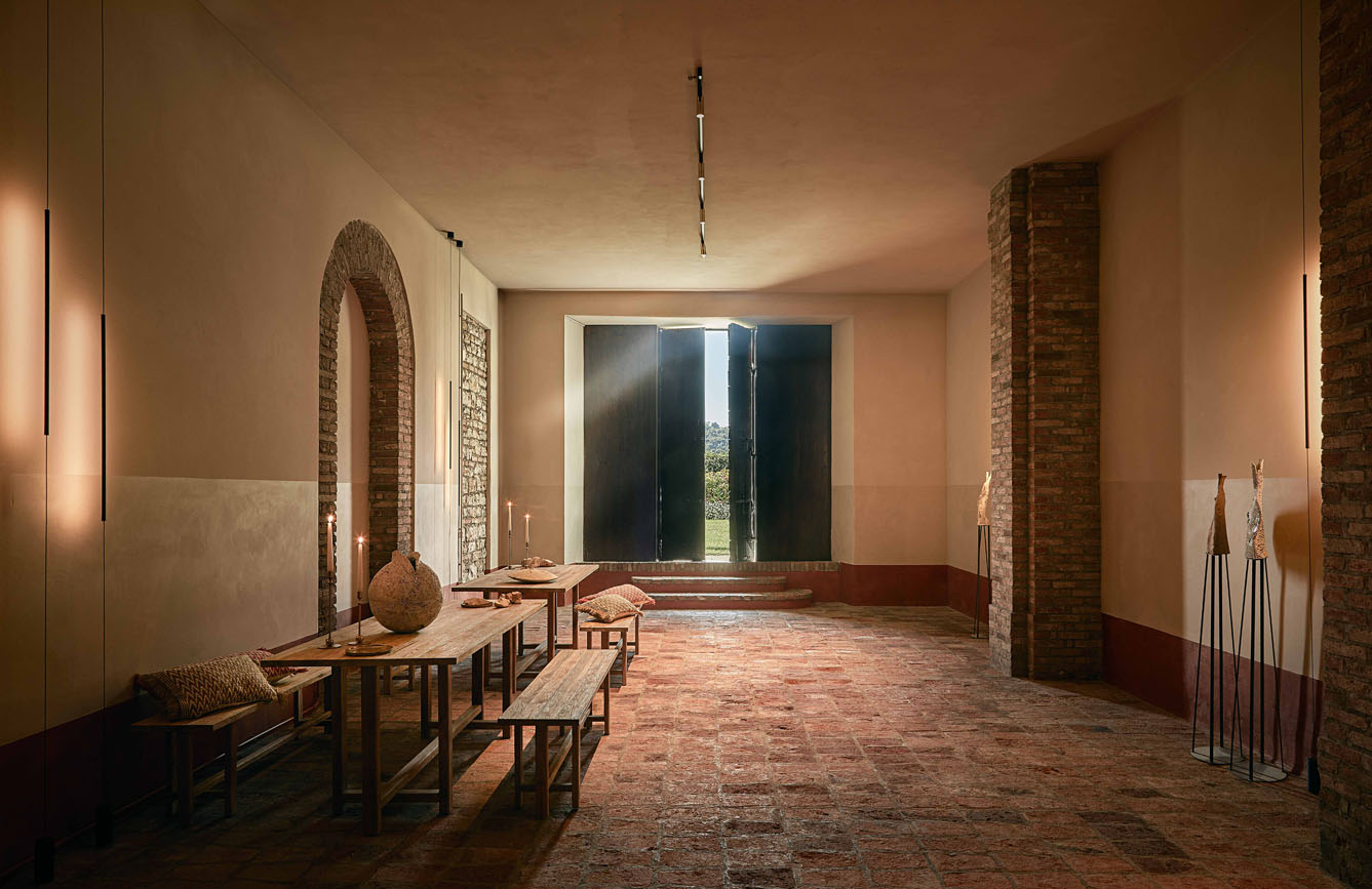 Le aree attorno alla Barricaia sono fatte di calce, legno e materia concreta e grezza, una semplicità che riposta alle origini.