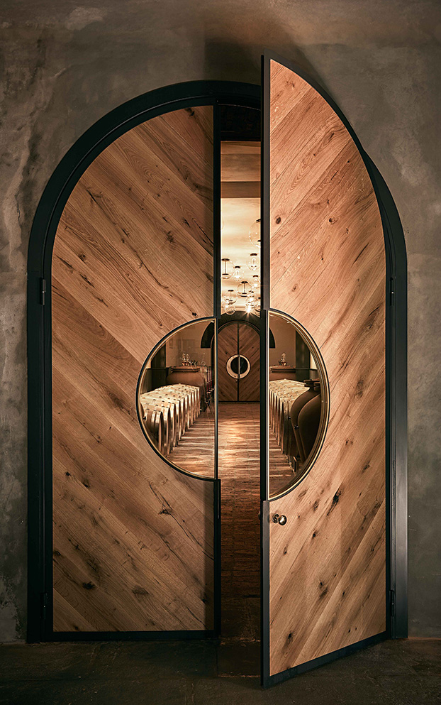 I grandi portoni sono certamente protagonisti assoluti, tutelando il delicato sistema di temperature tra interno ed esterno giocano egregiamente la loro partita per forma ed eleganza.